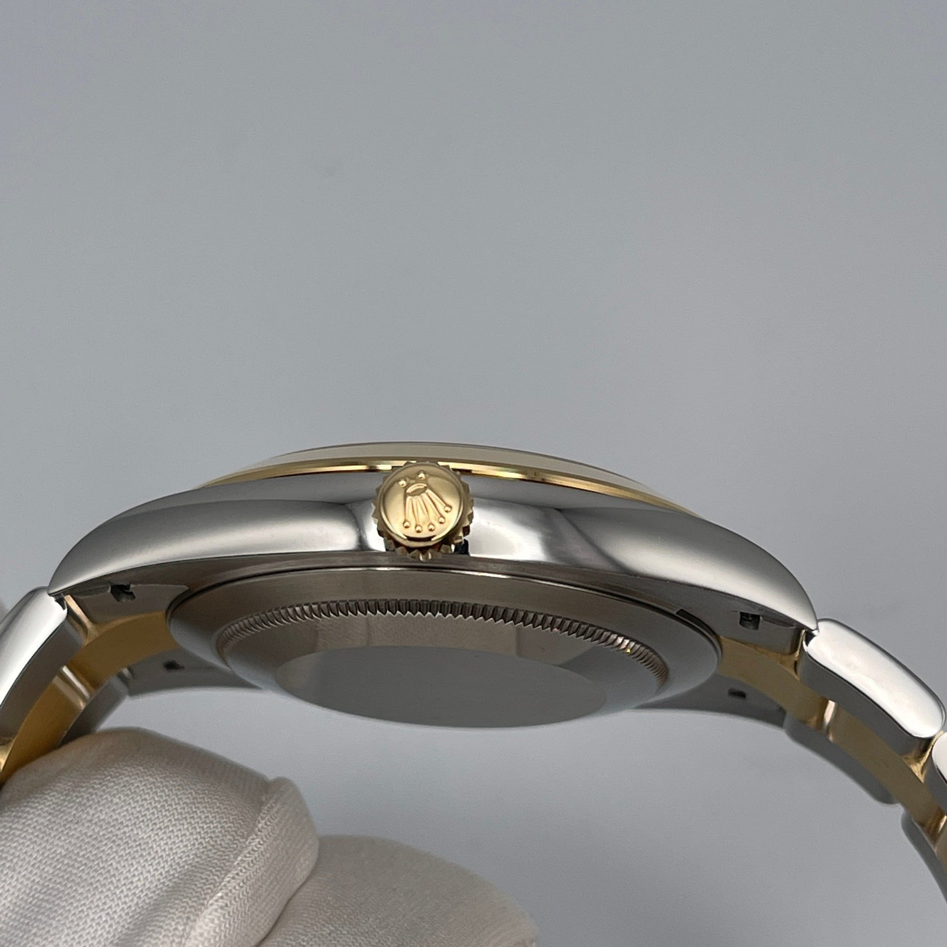 The 2025 Watch Datejust is designed with a 41mm stainless steel and yellow gold case. highlighted with a yellow gold smooth bezel. It features a bright silver colored dial with highly legible chromalight display with long-lasting blue luminescence. a date display at 3 o'clock and a protective scratch-resistant sapphire-crystal. On the wrist. the stainless steel and 18k yellow gold oyster bracelet is a true beauty.