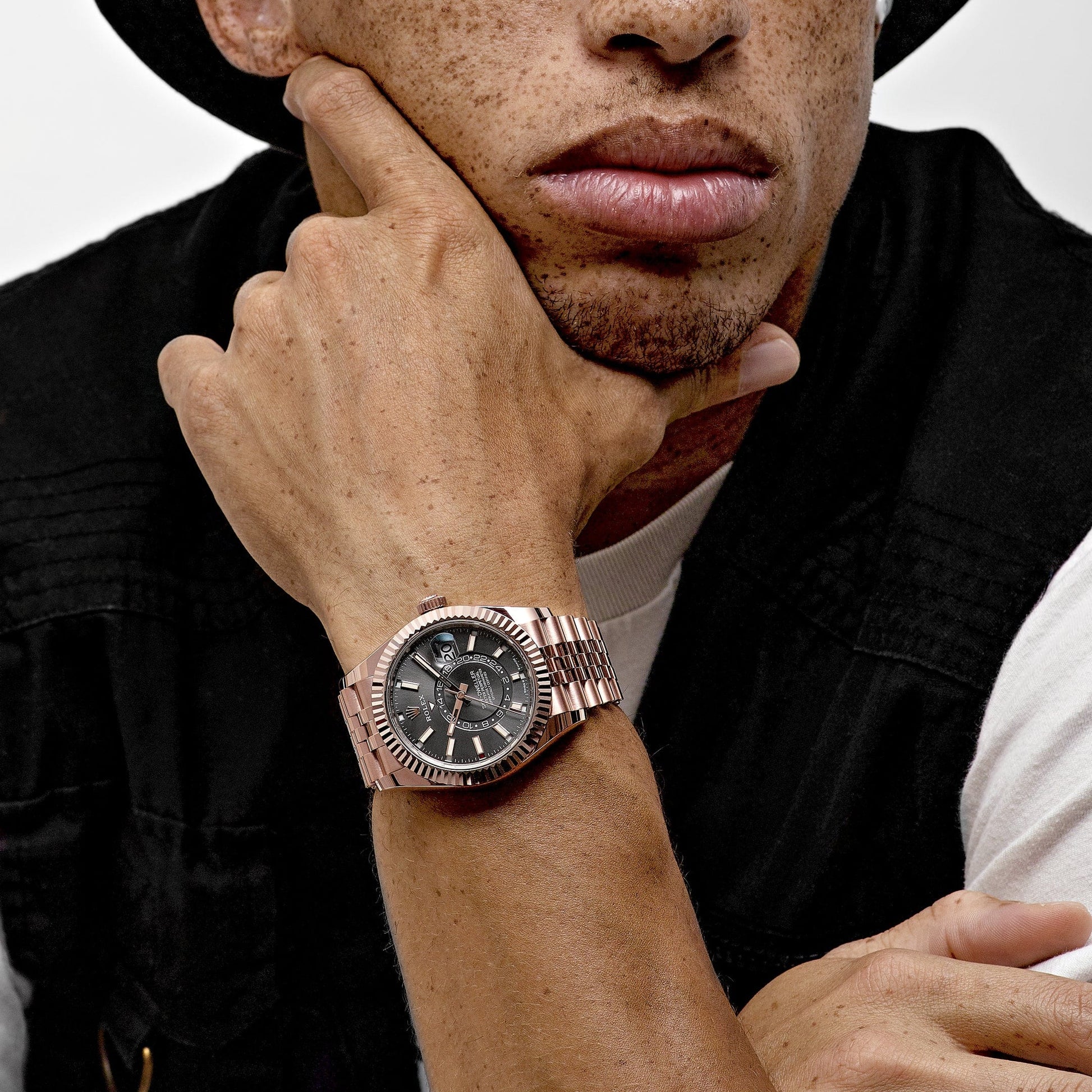The 2025 Watch Sky-Dweller 336935 ?is a marvel of both design and function. featuring a 42 mm case with a monobloc middle case. screw-down case back. and winding crown. The scratch-resistant sapphire crystal with a Cyclops lens over the date ensures readability. while the screw-down Twinlock winding crown provides water resistance up to 100 meters (330 feet). The 2025 Watch is paired with an 18kt Everose gold Jubilee bracelet. combining and comfort.