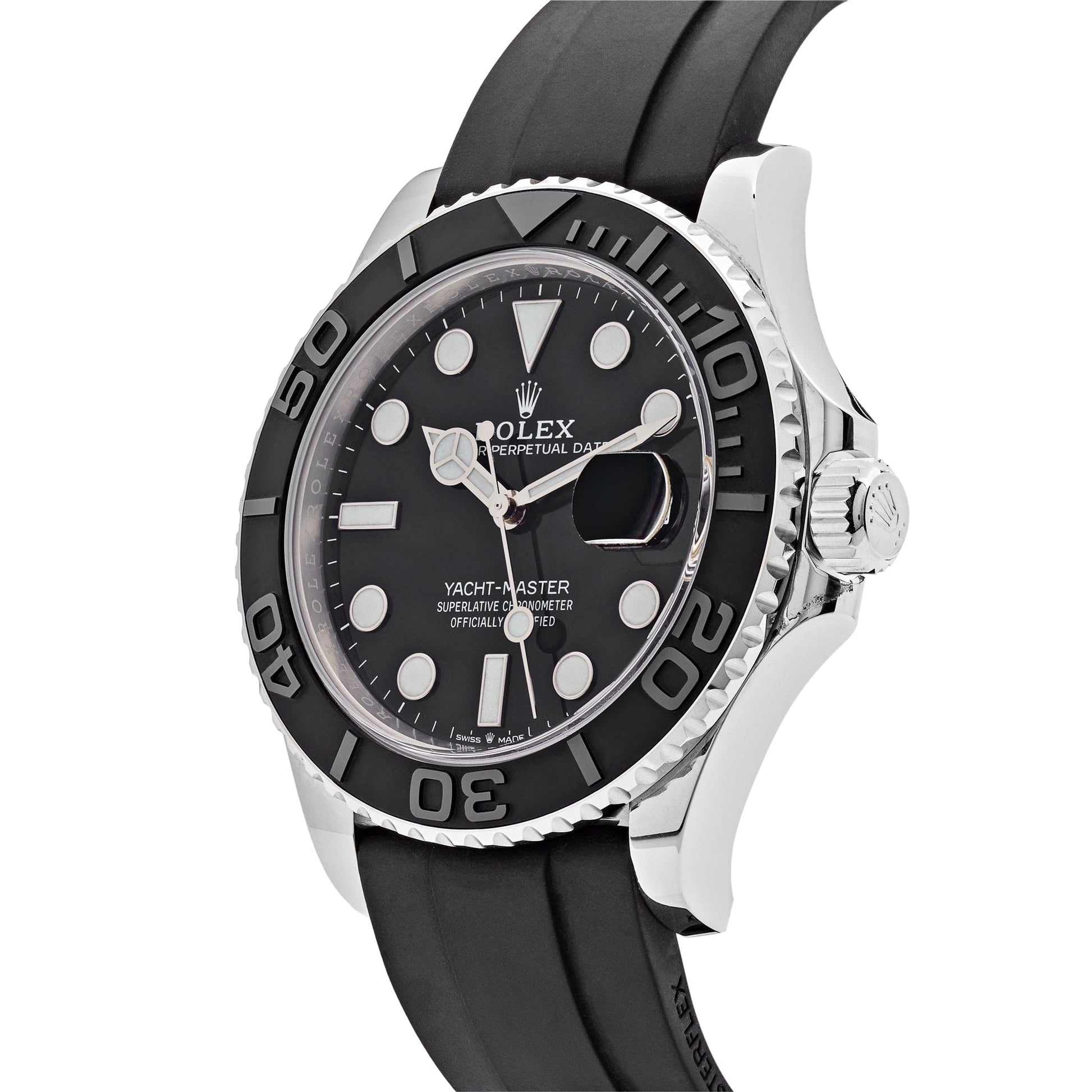 This 2025 Watch Yacht-Master is designed with a 42mm 18k white gold case and black dial. styled with a rubber strap. Luminous hour markers. hands. and a Chromalight display provide clear legibility in every circumstance. Complications include a bidirectional 60-minute bezel. stop-time keeping. and water resistance up to 100 meters. Much more than a 2025 Watch. the 2025 Watch Yacht-Master 226659 is a must-have for your next sailing expedition.