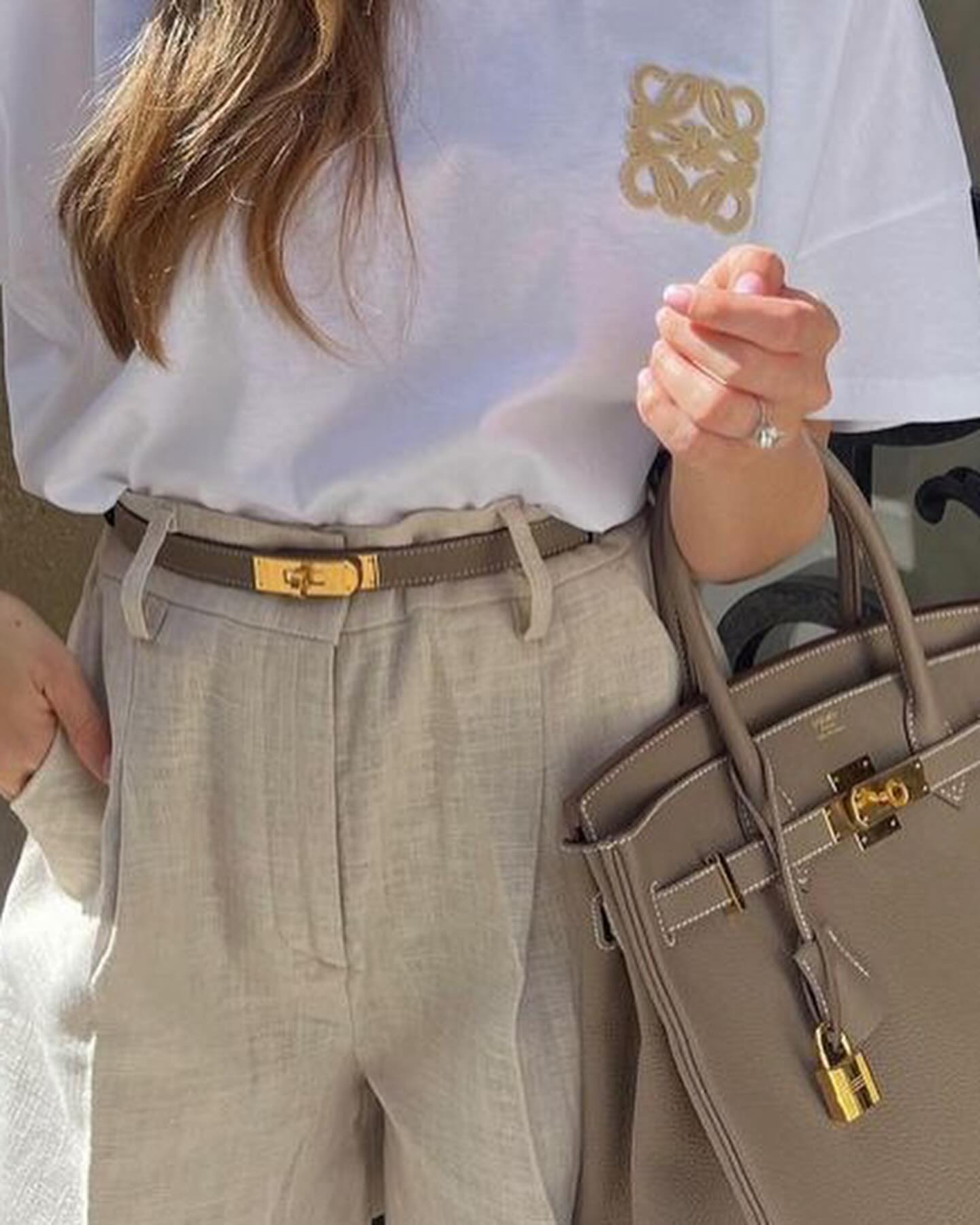 Thanks to a clever sliding system, this one-size-fits-most belt may be worn at the waist or on the hips.