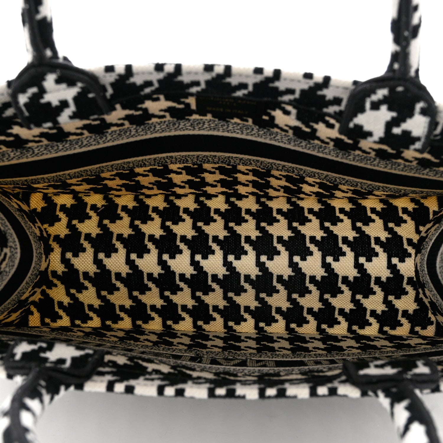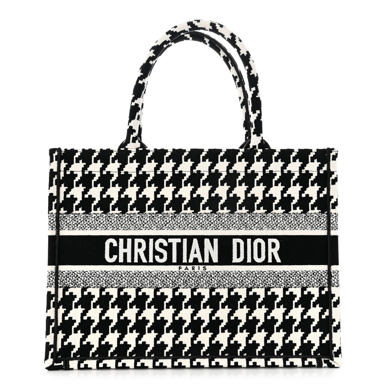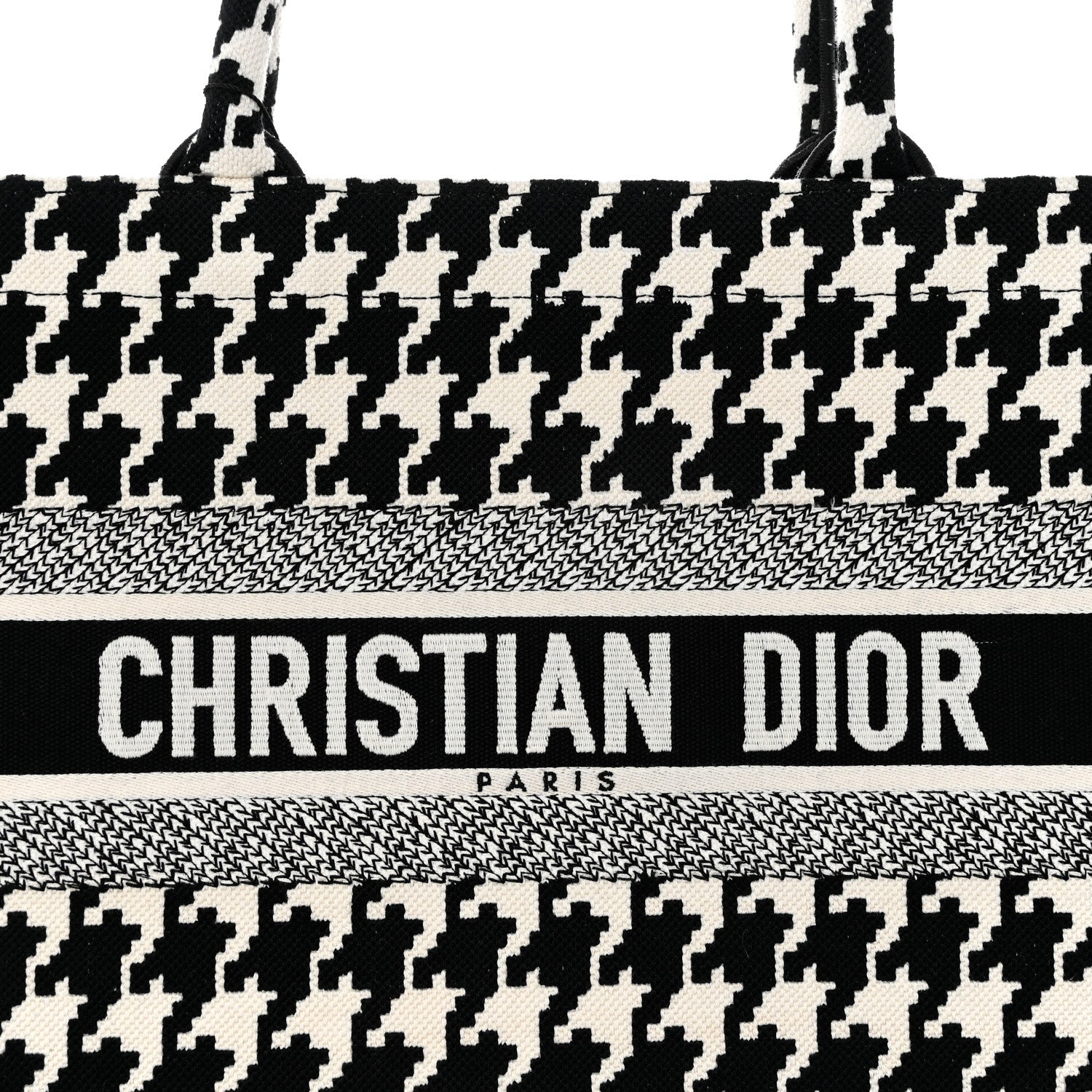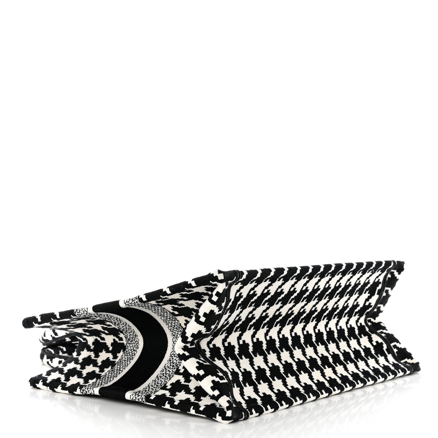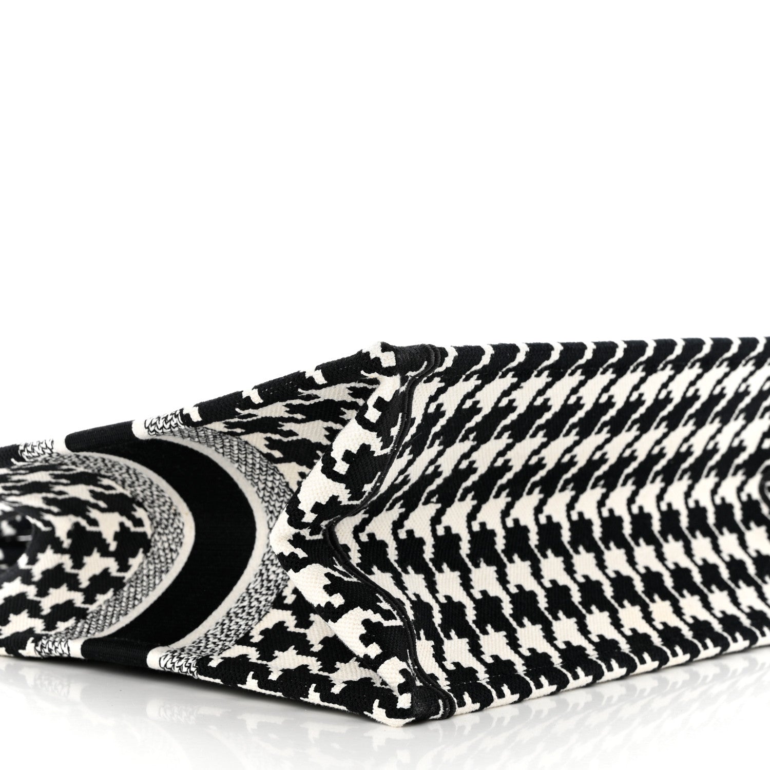 This is an authentic CHRISTIAN D Canvas Houndstooth Embroidered Medium Book Tote in Black and White. This lovely tote is crafted of classic houndstooth embroidered canvas in black and white. The bag features rolled canvas top handles and a prominent white CHRISTIAN D logo embroidered on the front. The top is open to a spacious canvas interior.