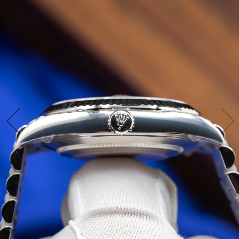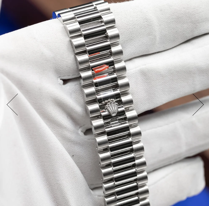 This timepiece needs no introduction. It features a 40mm platinum case with a fluted bezel, paired with the timeless platinum President bracelet. Adorned with the coveted olive green dial, it stands as the rarest iteration within the Platinum Date collection.