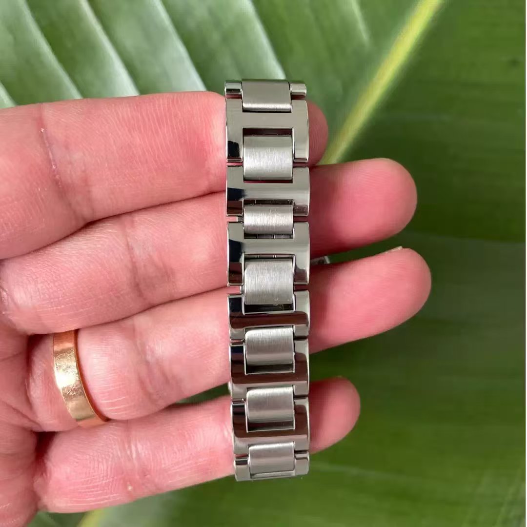 Crown Material: Stainless Steel with a Synthetic Cabochon-Shaped Spinel